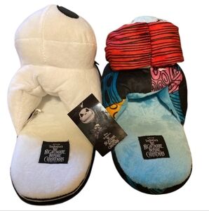 Cozy plush slippers featuring Jack and Sally. Perfect for fans of the movie. Soft and comfortable.