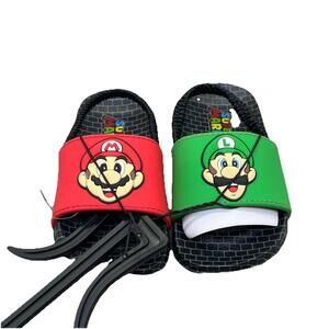 Ground Up Nintendo Mario Luigi Toddler Slides Sandals Unisex 5/6 Red/Green {4}.