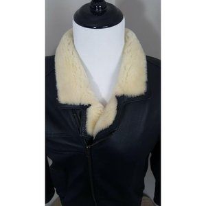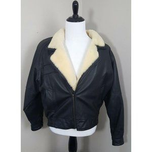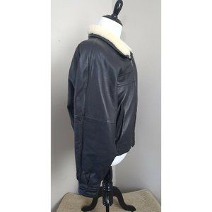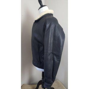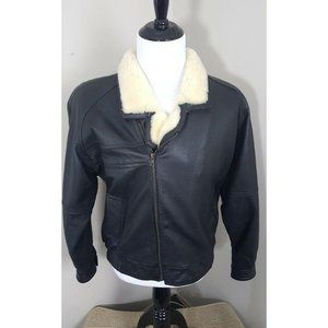 Ground Zero Genuine Leather Jacket Men Size 42 Bomber Flight Faux Fur Lined Neck Black
