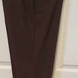 Gaviota ladies brown stretch trousers. Size 6. Classic flat front zip and button closure. Perfect for any occasion.