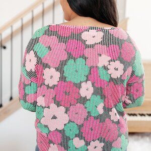 This Group Chat Floral Top is perfect for any occasion! Its waffle knit construction provides a unique texture, while its round neck and long sleeves add a classic finishing touch. Its vintage floral print and two-tone color palette make it a timeless must-have. It's a great addition to your wardrobe!