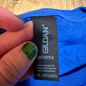 This Gildan 4XL Group Therapy T-shirt features a fun graphic related to shooting and the 2nd Amendment, perfect for gun enthusiasts. Made from comfortable, softstyle cotton in a vibrant blue color, this shirt is ideal for casual wear. The front displays a target with bullet holes and the text "GROUP THERAPY". Condition is new, offering a fresh addition to your wardrobe.