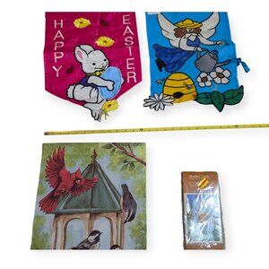 EUC group of 4 spring themed outdoor flags, they are all approximately 12" X 18".