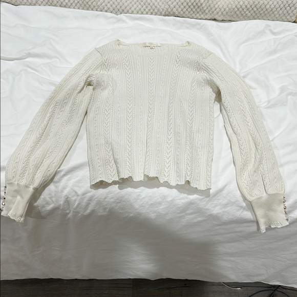 Cream Ribbed/Patterned Sweater with cute gold buttons on the sleeve ends.