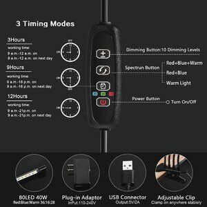Efficient LED Combination: This LED lamp has grow lights made up of 80 efficient growing LEDs . It meets the conditions of plant growth without sunlight. 1--Full Spectrum 380nm-800nm : Suitable for all plants to root and sprout. 2--Red+BLUE Spectrum: for blooming and fruits. 3--Red+Blue+Full Spectrum: A mix of Red+Blue+Warm White is best to fuel the growth of your plants.
