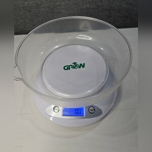Grow digital nutrient scale with removable plastic bowl. Features tare function and 1000 gram weight capacity.