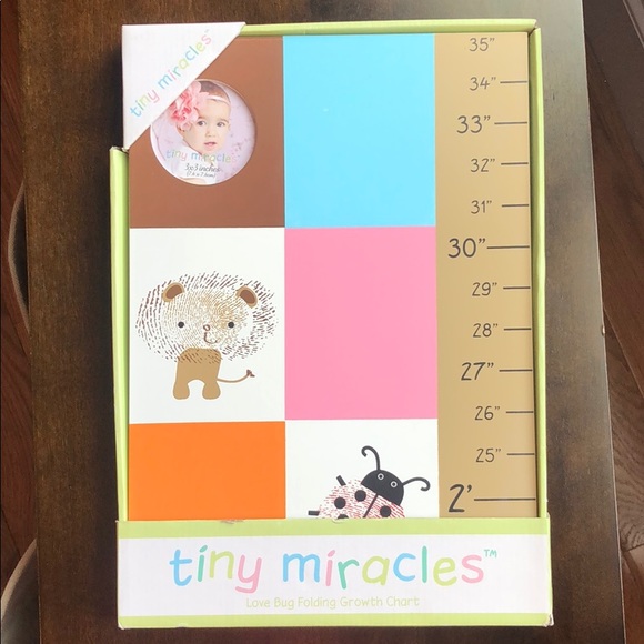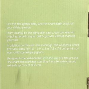 Baby wooden wall mounted growth chart. Tiny white mark in blue square as shown in last picture that is barely noticeable and an easy fix. 3 folding panels. Each measures 9 5/8” W x 14” H