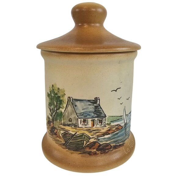 Grès de France Handpainted Stoneware Canister Schilder Coastal Cottage Pottery