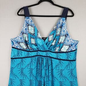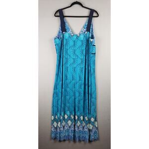 Gru Women's Plus Size 2X Paisley Maxi Dress Blue Beach Vacation Resortwear Boho