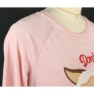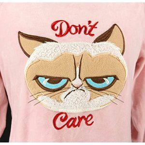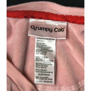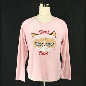 Grumpy Cat Don't Care Cat Face Pink Soft Velour Pajama Top Sleepwear - M