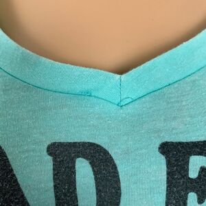 Adorable graphic shirt featuring the dearly departed Tardar Sauce, AKA Grumpy Cat. V neck, light teal. Loose thread at neck hem, otherwise in great preloved condition.