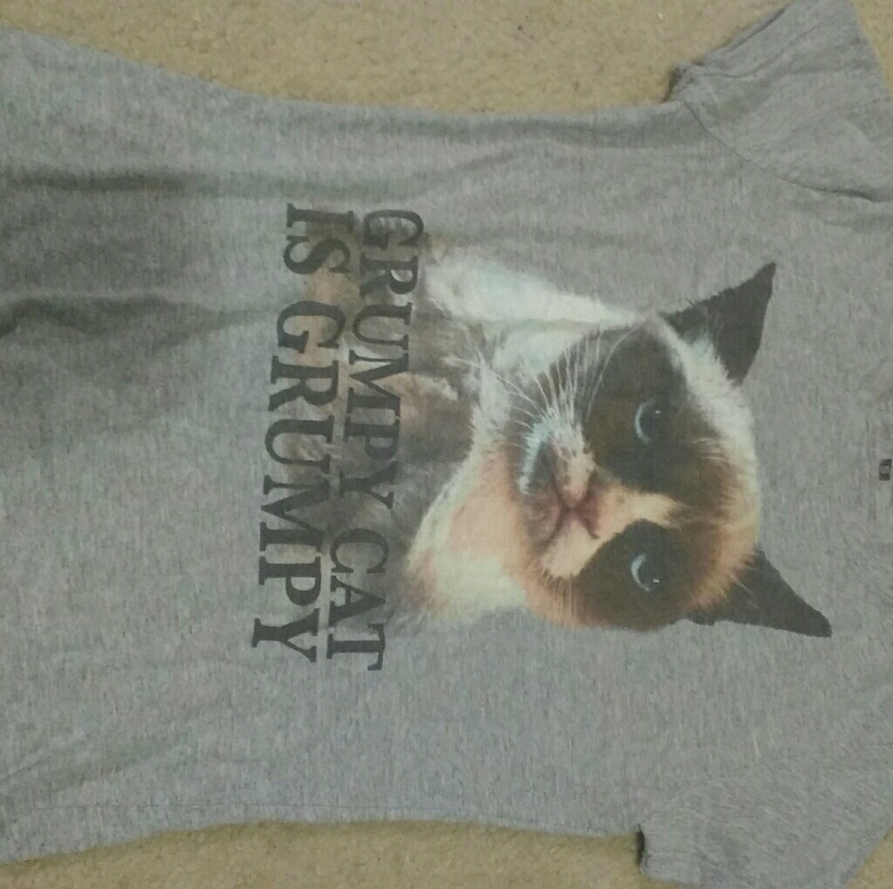 Grey, soft, grumpy cat tee