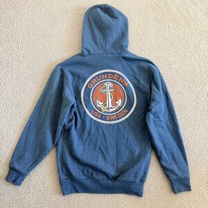Grundens Hoodie Blue Anchor Logo USA Sweden Pullover Sweatshirt