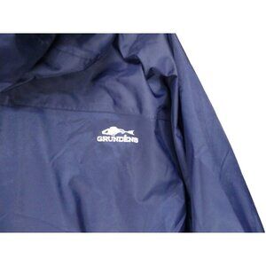 Grundens Nylon PU Coating Zip Hooded Rain Fishing Jacket Lined Blue Mens XXL