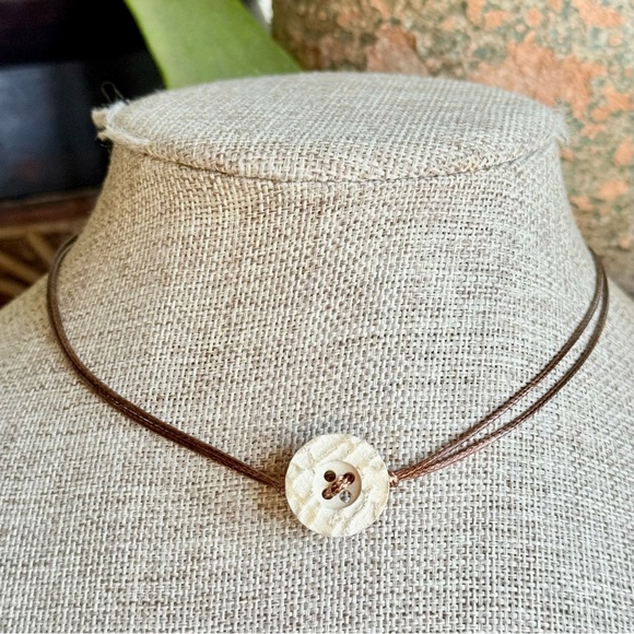 Handmade vintage button solitaire choker. Made with a cute vintage button.