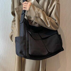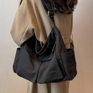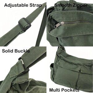 Grunge Canvas Hobo Crossbody Bag Large Messenger Tote with Multiple Pockets