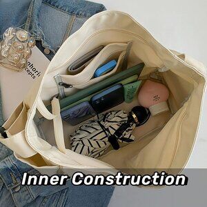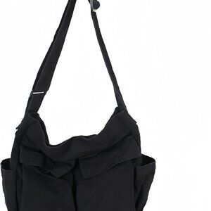 Features: Chunky canvas construction with a vintage vibe, this spacious messenger tote offers tons of room for your essentials. Features a main compartment, zip pocket, and multiple outside pockets for quick access. The adjustable wide strap lets you wear it over your shoulder or crossbody, perfect for work, travel, or casual outings.