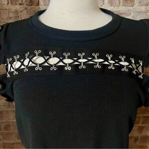 Grunge Cut-Out Black Ruffle Trim Cropped Women's Top -Size S -TP35