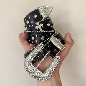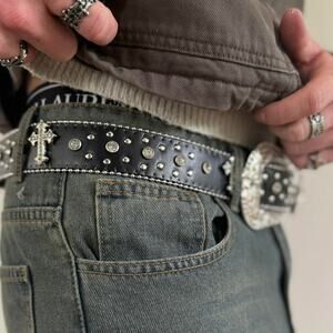 Grunge Goth Cross Gemstone Belt – Black Silver Unisex Style, Brand New