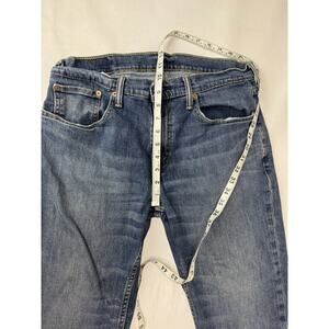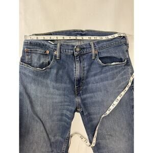 The product is a pair of Levi's 559 jeans in a medium wash from the 2009 era. These men's size 33 * 30 jeans feature a relaxed fit with a mid-rise and straight leg style. Made of cotton denim, they have a 5-pocket design with a zip closure and Levi's logo accents. The distressed and grunge theme adds a unique touch to these classic blue jeans, perfect for all seasons of wear. Machine washable and of regular size type, these Levi's 559 jeans are a versatile and stylish addition to any man's wardrobe.