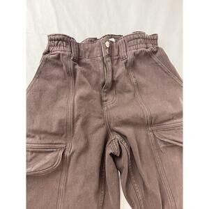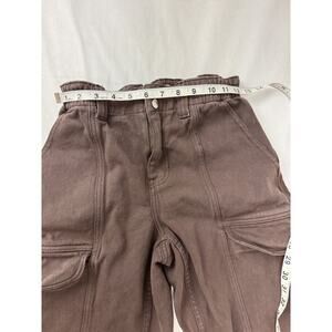 Grunge Pacsun Elastic Waist Cargo Utility Pants Brown Snap Button Small Pockets