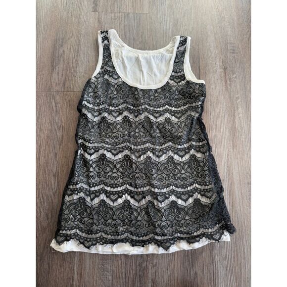 Mossimo sheer black lace tank layered over a white underlay for that perfect emo-grunge Y2K contrast.. Total 2000s mall-goth / MySpace era vibes. Perfect for alt, emo, fairy-grunge fits.