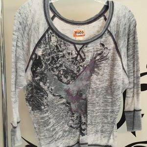 3/4 length grey shirt that is perfectly faded to go with a pair of ripped black jeans or leggings!!