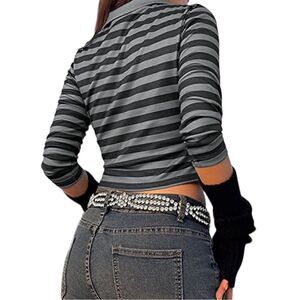 Black & Gray great trend , soft, trendy, Vintage long sleeve shirt tight crop top .Perfect for casual daily wear, party, night club, party, vacation, dating, weekend, friends gathering, streetwear, photo shoot, trendy