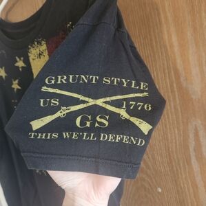 Grunt Style Black T-Shirt with Distressed Flag Graphic