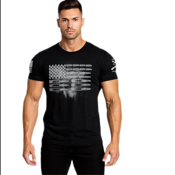 Grunt Style Black & White Patriotic Bullet Flag Tee — Size XL