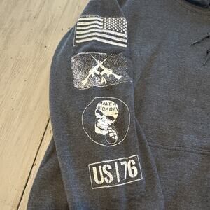 Grunt Style Dusty Blue Sleeve Logo Don’t Tread On Me Hoodie Sweatshirt Men’s L