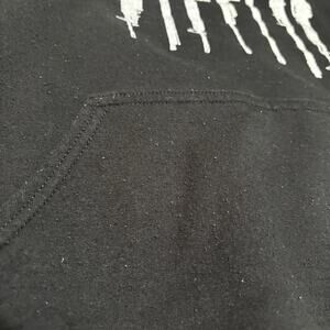 Grunt Style Hoodie Mens Size Large Black Rifle Flag America Pullover Sweatshirt. Sweatshirt has pilling on front and the hoodie is missing the drawstring. Please see all pictures for reference, condition and measurements.