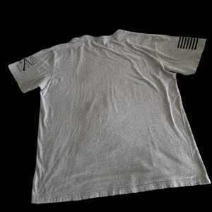 The Grunt Style Logo T-Shirt is a men's short-sleeved, solid gray shirt made of cotton. It features a crew neck and a regular fit, with the Grunt Style logo as an accent. The shirt is machine washable and is available in 2XL size, suitable for big and tall men. The shirt has a patriotic theme, with the words "Assaulting Forward" written on it. Excellent condition. No rips/holes/tears/stains/discoloration/snags. Kept in a smoke/pet free home.