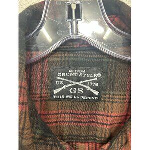 Grunt Style Mens Shirt Medium Plaid Button-Up Red Black Brown Lumberjack Country