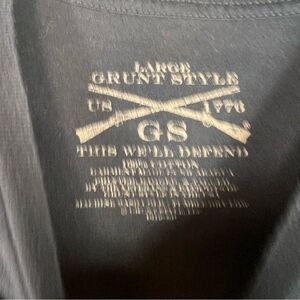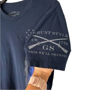 *Navy blue with light blue and gray contrasting flag logos and Grunt Style US 1776 This We’ll Defend
