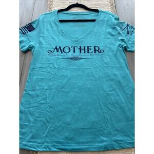 Grunt Style Teal Blue Purple Mother Acronym V Neck T Shirt Women’s Sz XXL