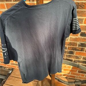 Dark blue tee with a bold flag design. Ideal for everyday wear.