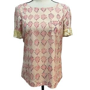 Gryphon New York Pink Printed Short Sleeve silk Sequin Pocket Tee Top size small