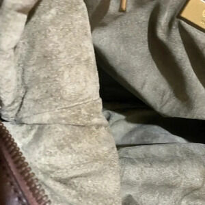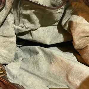 Gryson brown distressed leather satchel handbag with gold tone hardware main compartment 2 pockets at interior wall 1 zip closure & zip closure at top 1 zip pocket closure at center suede lining lining have stains exterior have marks scratches hight 13.5” width 15.5” depth 5” strap drop 10” The dimensions are based on approximately measurements before placing an order please check take a moment to view all photos using feature for a closer look