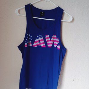 Gstar RAW blue tank top with red, white, and blue, stars and stripes design in letters on front. Plain back. Excellent condition. No issues.