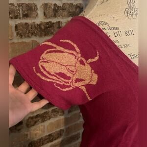 Gsus sindustries beetle scarab featured wool blend wine red knit top sz medium