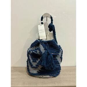 Guadalupe Mochila Crochet Bucket Bag with Tassel Detail Blue