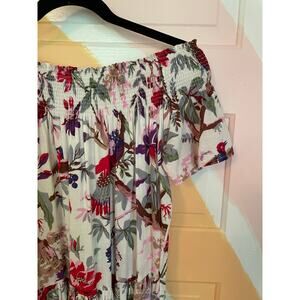 Guadalupe Women’s Maxi Dress Floral Bird Print Cotton Boho Peasant Off Shoulder
