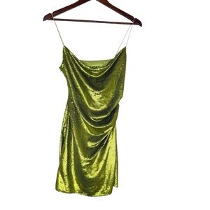 Guage81 Almora lime green Sequin Ruched Mini dress SZ 36 (small)