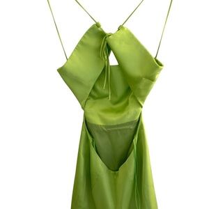 This striking green dress is designed with a strapless neckline and a sleek sheath silhouette, perfect for a cocktail night out. Its form-fitting style and smooth fabric create a chic and elegant look, making it a standout piece for any evening occasion.
