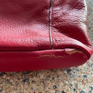 Stylish and versatile, this red leather crossbody bag is perfect for any occasion. Its vibrant color and sleek design make it a must-have accessory.
