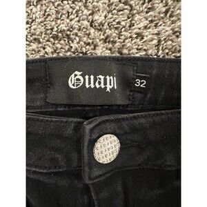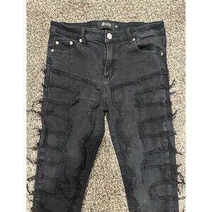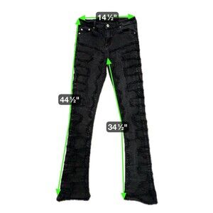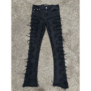 Guapi Mens Black Obsidian Blood Diamond Stacked Denim Fringe Pants Size 32x34