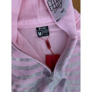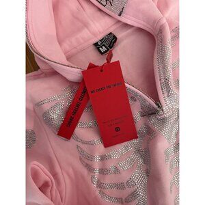 Guapi Men's Skeleton Hoodie Light Pink Silver Rhinestones Ltd Ed Size M (JB)