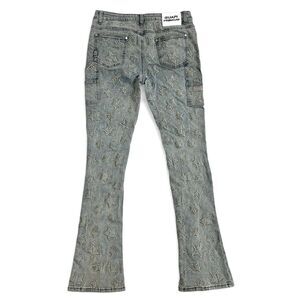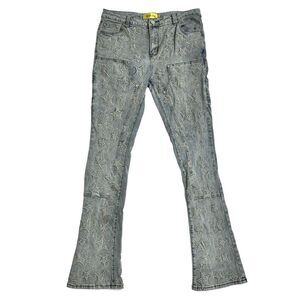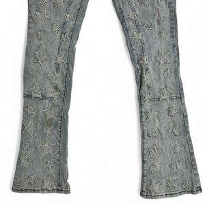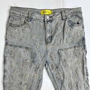 Guapi Premium Men’s Star Embroidered Flare Jeans Distressed Rock Denim 36 X 37