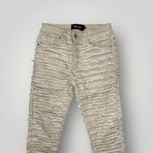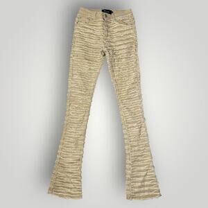 Guapi Sand Brown Spiderweb Denim Stacked Jeans sz 28, L37